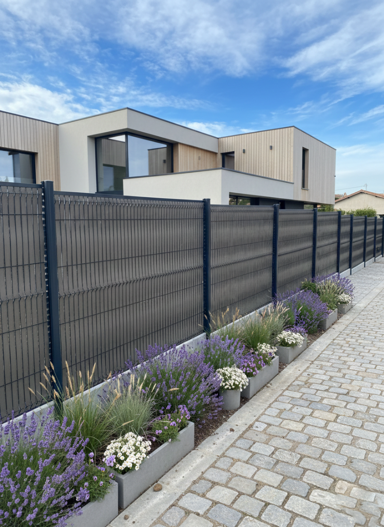 Grâce à sa conception clé en main, vous transformez facilement un panneau rigide standard en une clôture premium, sans achat complémentaire, pour une intimité renforcée et un extérieur valorisé.