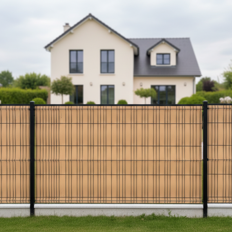 L’occultation en bois composite vient compléter ce panneau en offrant une protection visuelle optimale. Les lattes s’insèrent directement dans les mailles du panneau et se tressent pour créer un brise-vue efficace, transformant votre grillage en une clôture élégante et moderne. Cette solution permet de préserver votre intimité tout en conservant une finition soignée et contemporaine.